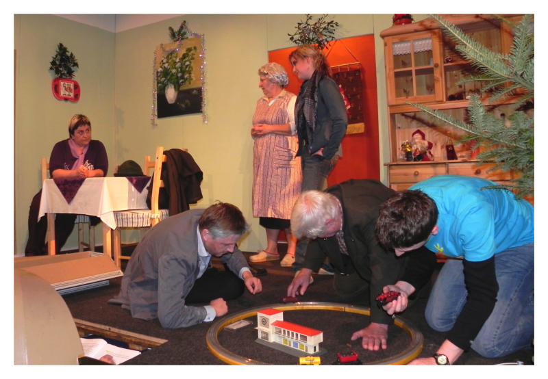 Mitwirkende: Michael Pichler - Hubert Pritzl (Vater) Manuela Haider - Marlies Pritzl (seine Ehefrau) Hörmann Ilona - Doris (beider Tochter) Christine Schimpl - Oma Apollonia Beißl (Marlies Mutter) Harald Hintersteininger - Wolfi (Doris Freund) Horst Schimpl - Onkel Adi Scheuchenegger Petra - Souffleuse Scheba Franz, Kneissl Karl - Technik Dienstl Tamara, Schechenegger Petra - MaskeAichinger Richard - Spielleiter